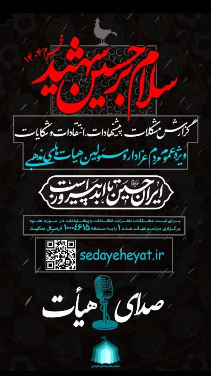 ️عموم مردم و عزاداران حضرت اباعبدالله الحسین علیه‌السلام نیز می‌توانند با مطرح کردن نظرات، پیشنهادات، انتقادات و شکایات خود درباره نحوه برگزاری مراسم به برگزاری با شکوه هیأت‌های مذهبی کمک کنند. ️