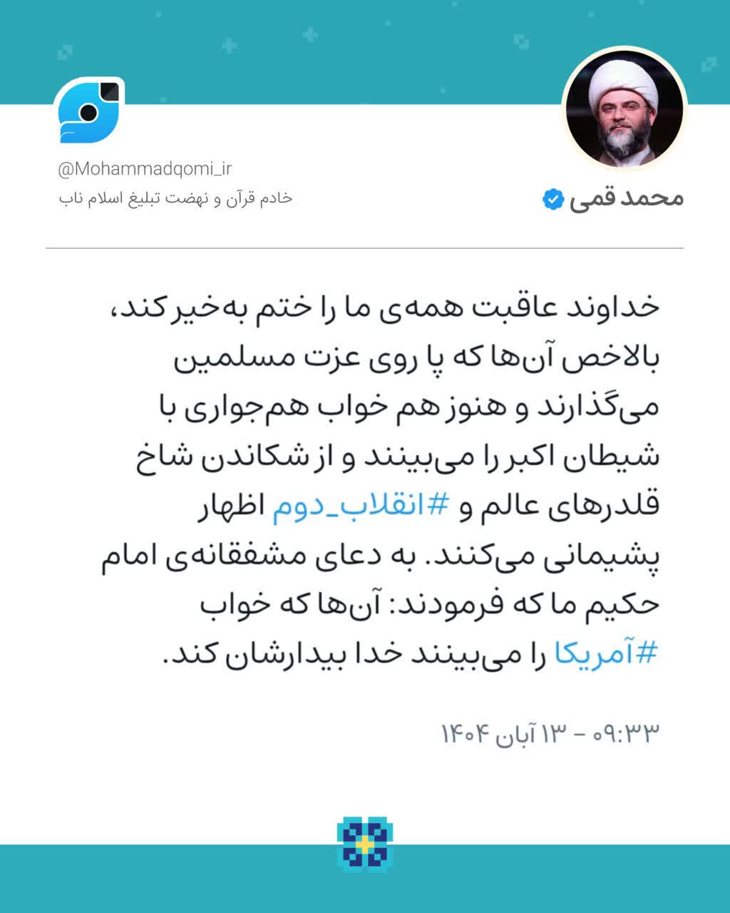 ۱۳ آبان | حجتالاسلام محمد قمی در صفحه شخصی خود نوشت؛