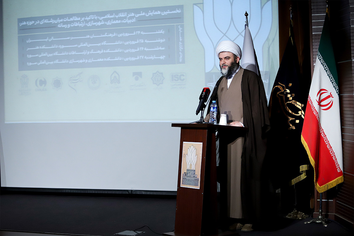 آیین افتتاحیه نخستین همایش ملی هنر انقلاب اسلامی با حضور حجتالاسلام قمی، رئیس سازمان تبلیغات اسلامی، حجتالاسلام خسروپناه، دبیر شورای عالی انقلاب فرهنگی، دکتر محمدحسین ساعی رئیس دانشگاه بینالمللی سوره و دیگر صاحبنظران حوزه فرهنگ و هنر برگزار شد.