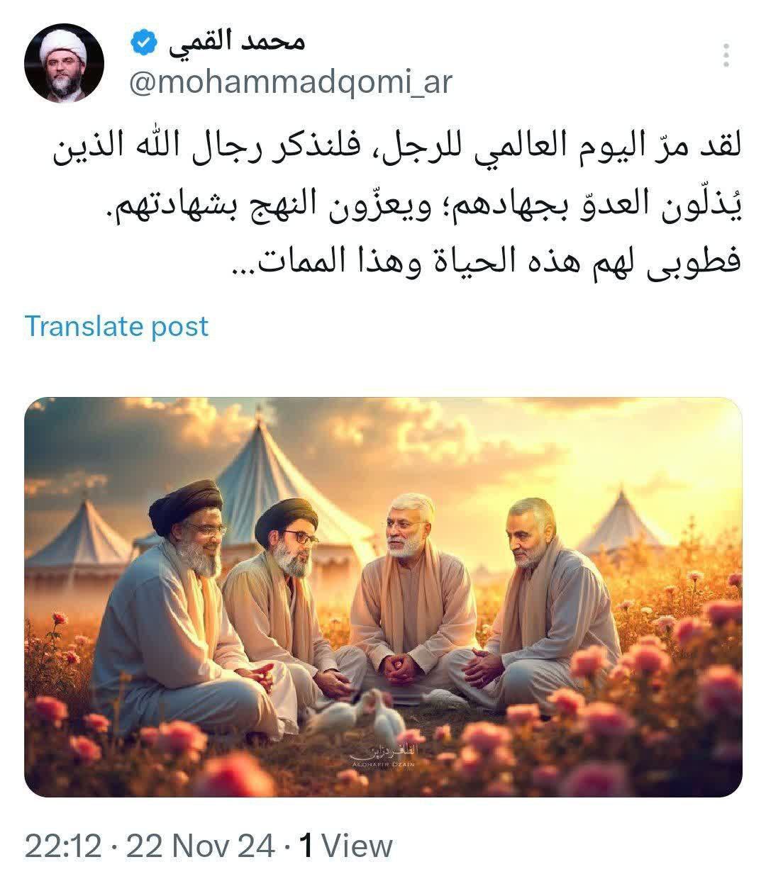 به گزارش روابط عمومی سازمان تبلیغات، حجتالاسلام محمد قمی، رییس سازمان تبلیغات اسلامی، به مناسبت روز جهانی مرد در توییتر عکسی منتشر کرد.